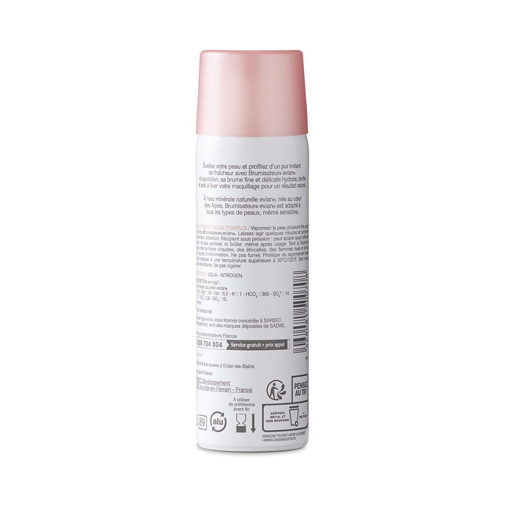 • Brumisateur® evian® 50ml  est à emporter partout avec vous dans votre sac à main. Le format 50ml est accepté dans les cabines en avion pour un instant de détente et de fraîcheur !