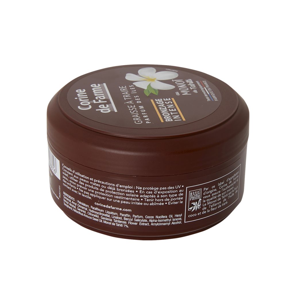 Spécialement conçue pour les peaux mates ou déjà bronzées, la graisse à traire accélère et intensifie votre bronzage.